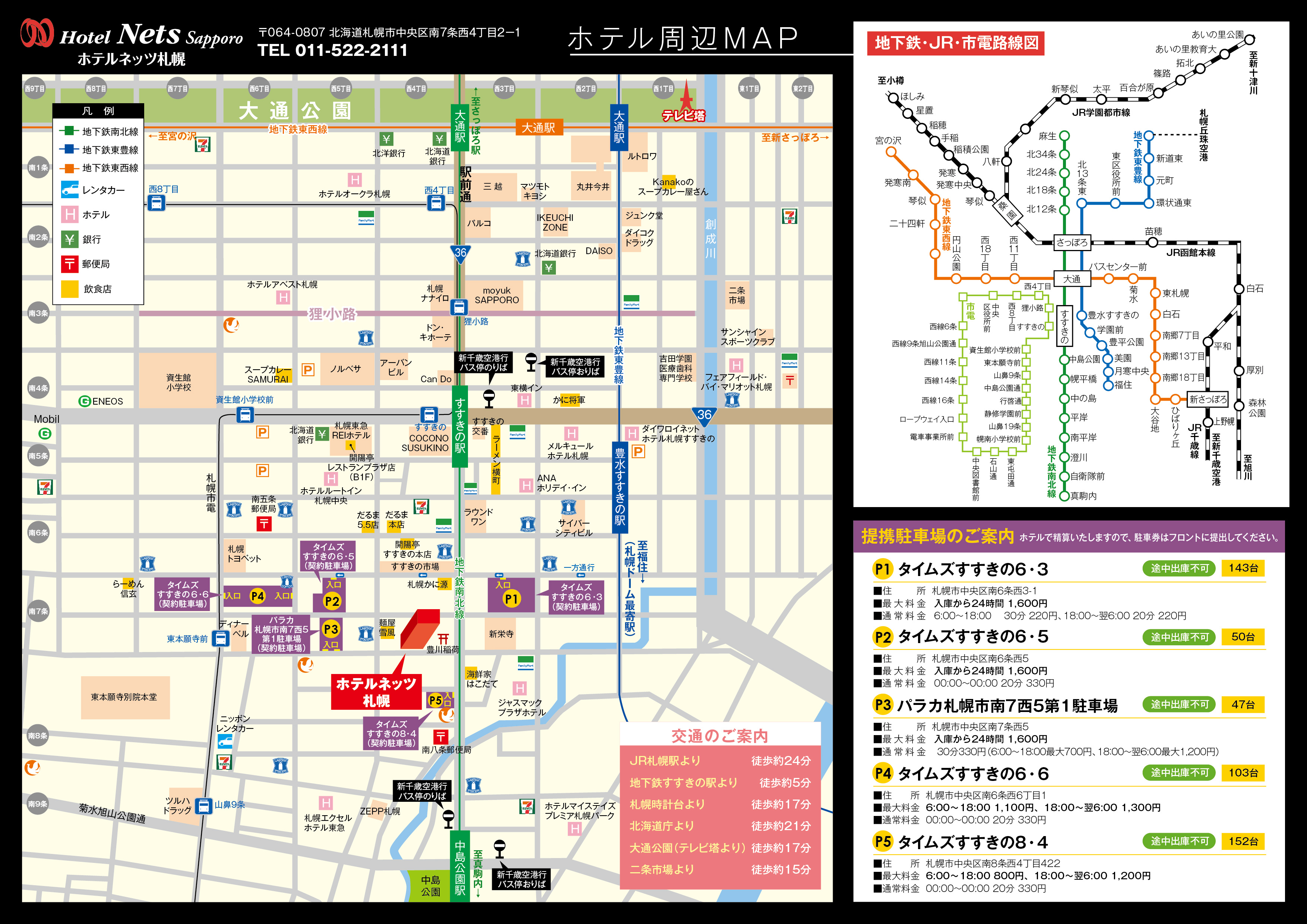 ・Times Susukino 6-3(南6條西3丁目)步行3分鐘即可到達飯店