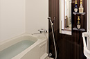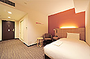 The Universal room offers comfort and functionality for the convenience of various guests. Luggage can be stored easily on the baggage rack using a built-in slide. A compact table and chair with a spacious cushion is placed in the relaxations space, wide enough to move freely on a wheel chair. All in consideration of light-weight and movability. You can enter straight into the bath room on your wheel chair.