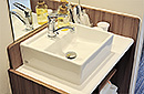 ユニバーサルルームはさまざまなお客様がご利用いただく為、快適性と機能性に考慮。荷物が置きやすいよう造付のバゲージラックに引出しを設け収納を充実させました。車椅子でも十分に移動出来る空間にリラックススペースとして大きめでクッション性のあるチェアとコンパクトなテーブルを配置しました。いずれも軽量で移動性も考慮しております。車椅子でのバスルームへの入室も可能です。