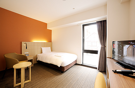 单人房可以两人入住,设计合理实惠。140cm的双人床使用口袋式弹簧床垫,床上放有本饭店独家使用的安眠枕頭。房间里还有一台和单人房同样的32英寸数码高清液晶电视机,采用SiTV系统在电视上除了可以放映智能手机或平板电脑里的內容以外,还可免费阅览网络或收视Youtube的动画节目。浴室、洗手间、洗漱台采用3处分离的独立设计,浴室里设置了在浴池外的洗浴空间。