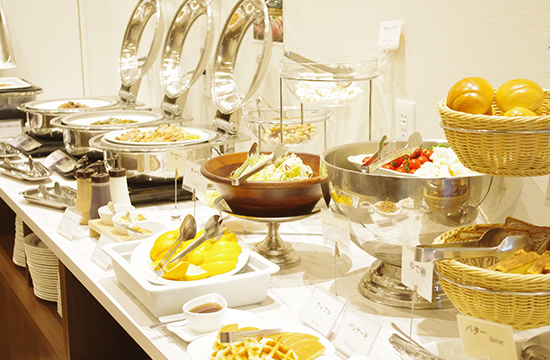 Breakfast is a Japanese and Western buffet of about 50 dishes using ingredients from Hokkaido